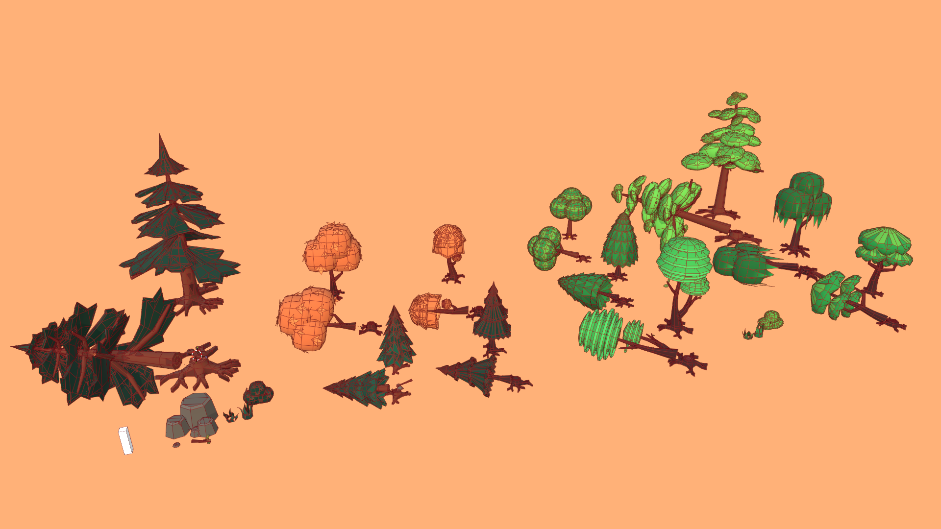 Most complex tree is 3 100 tris, and the simplest is 446 tris.